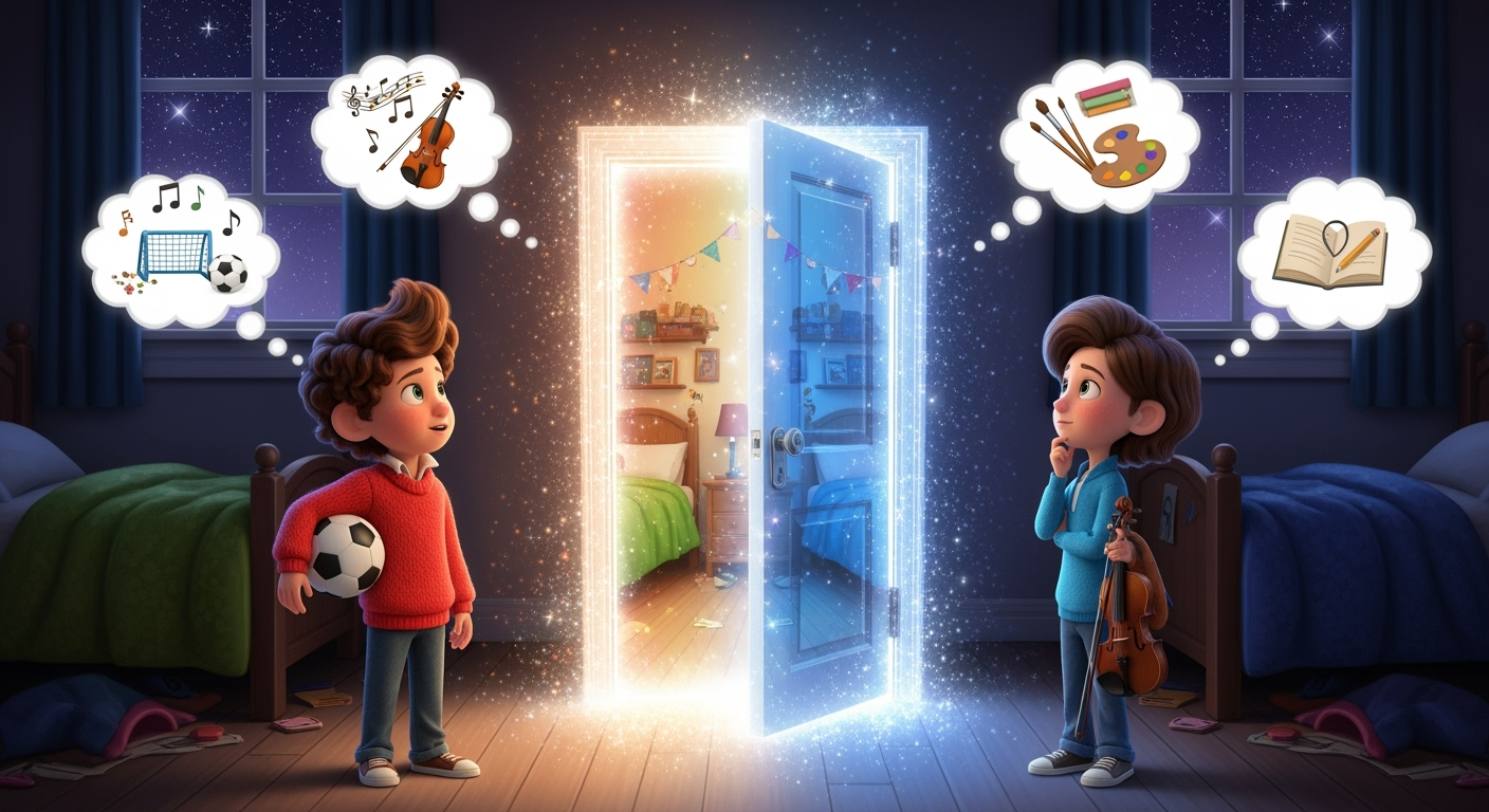 Und hier kommt der Zaubertrick: Vielleicht kannst du eine dieser Sachen in DIESER Welt ausprobieren! Denn jede neue Entscheidung ist wie eine kleine magische Tür zu einer neuen Version von dir selbst! Wie Ben und Pia in ihrem Abenteuer über magische Zukunftstüren entdecken, können wir alle lernen, mutig neue Wege zu gehen und wichtige Entscheidungen über unsere Zukunft zu treffen.