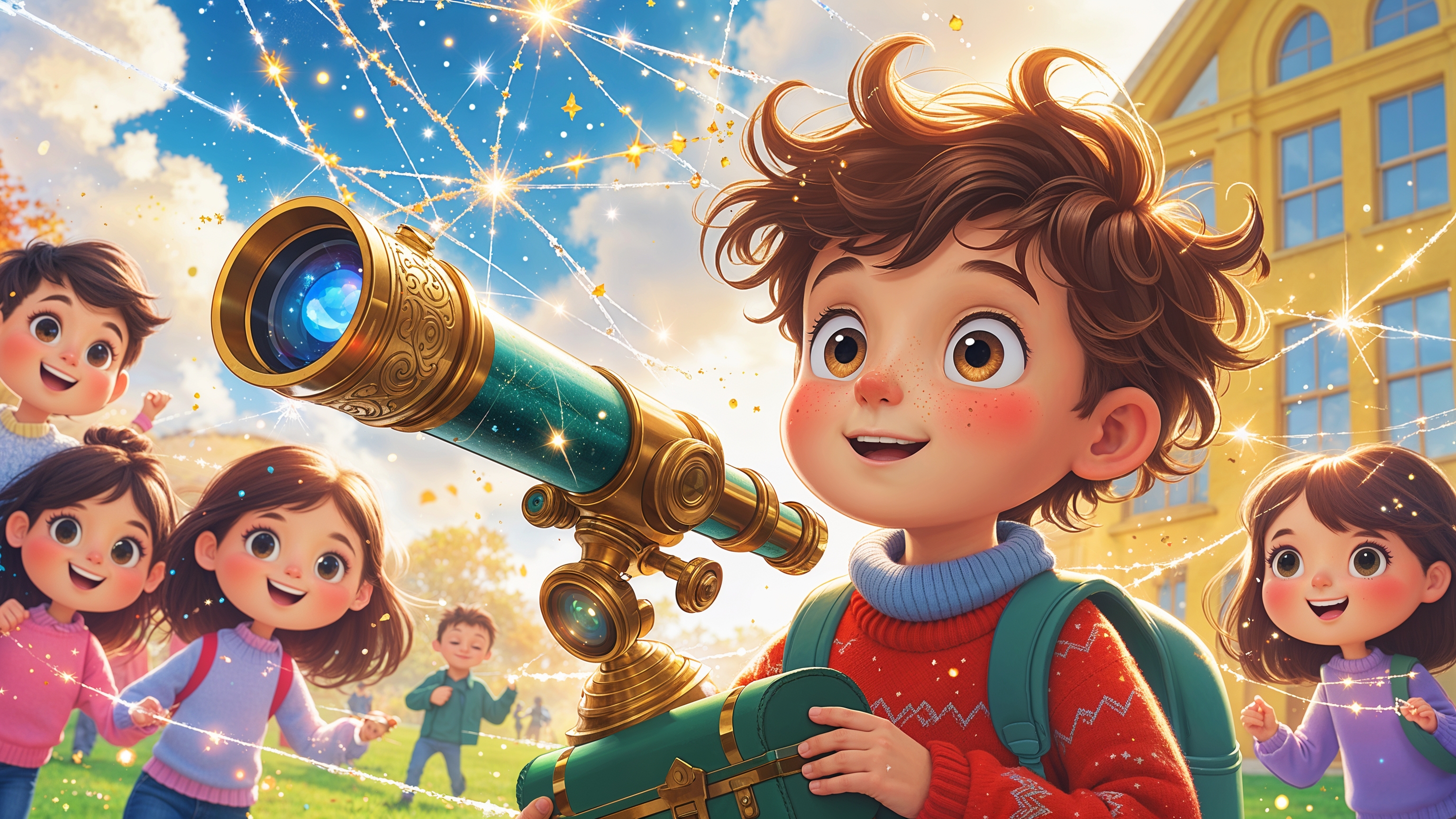 Elias bewahrte das Fernglas wie einen Schatz auf, aber er benutzte es nicht mehr so oft. Er hatte gelernt, die unsichtbaren Fäden auch ohne Fernglas zu spüren – mit seinem Herzen. Und wenn er bemerkte, dass jemand traurig oder einsam war, erinnerte er sich daran, dass manchmal nur ein kleiner Schubs der Freundlichkeit nötig ist, um die schönsten Verbindungen wieder zum Leuchten zu bringen.