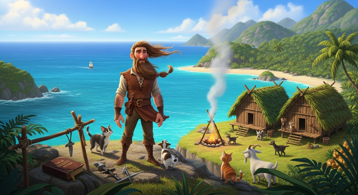 Stell dir vor, Ben und Pia nehmen dich mit auf eine Reise zu einer geheimnisvollen Insel im großen Pazifischen Ozean! Dort lebte vor über 300 Jahren ein echter schottischer Seemann namens Alexander Selkirk – ganz allein, vier Jahre und vier Monate lang! Seine unglaubliche Geschichte klingt wie aus einem Abenteuerfilm, aber sie ist wahr. Und das Beste: Sie inspirierte später einen der berühmtesten Romane der Welt!