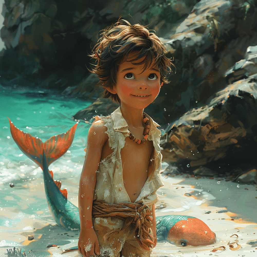 In einer kleinen Küstenstadt, umgeben von schäumenden Wellen und sanftem Meeresrauschen, lebt ein junger Junge namens Ben. Ben hatte schon immer eine endlose Neugier für die Legenden von Meerjungfrauen, die in den Geschichten der Dorfältesten erzählt wurden. Noch bevor die Sonne am Horizont erschien, war Ben draußen auf den sandigen Wegen unterwegs, um seinen Morgen am Strand zu verbringen.