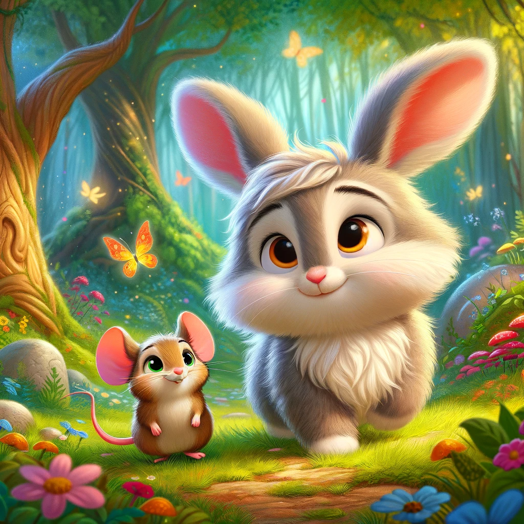 Eines sonnigen Nachmittags, als Linus sich gerade in seinem gemütlichen Erdloch versteckte, hörte er eine fröhliche Stimme. „Hallo! Bist du da unten, kleiner Hase?“ rief die Stimme. Linus schaute vorsichtig nach oben und sah eine kleine Maus mit funkelnden Augen und einem breiten Lächeln. Sie hieß Mira und war das genaue Gegenteil von Linus – mutig, abenteuerlustig und immer voller Energie.